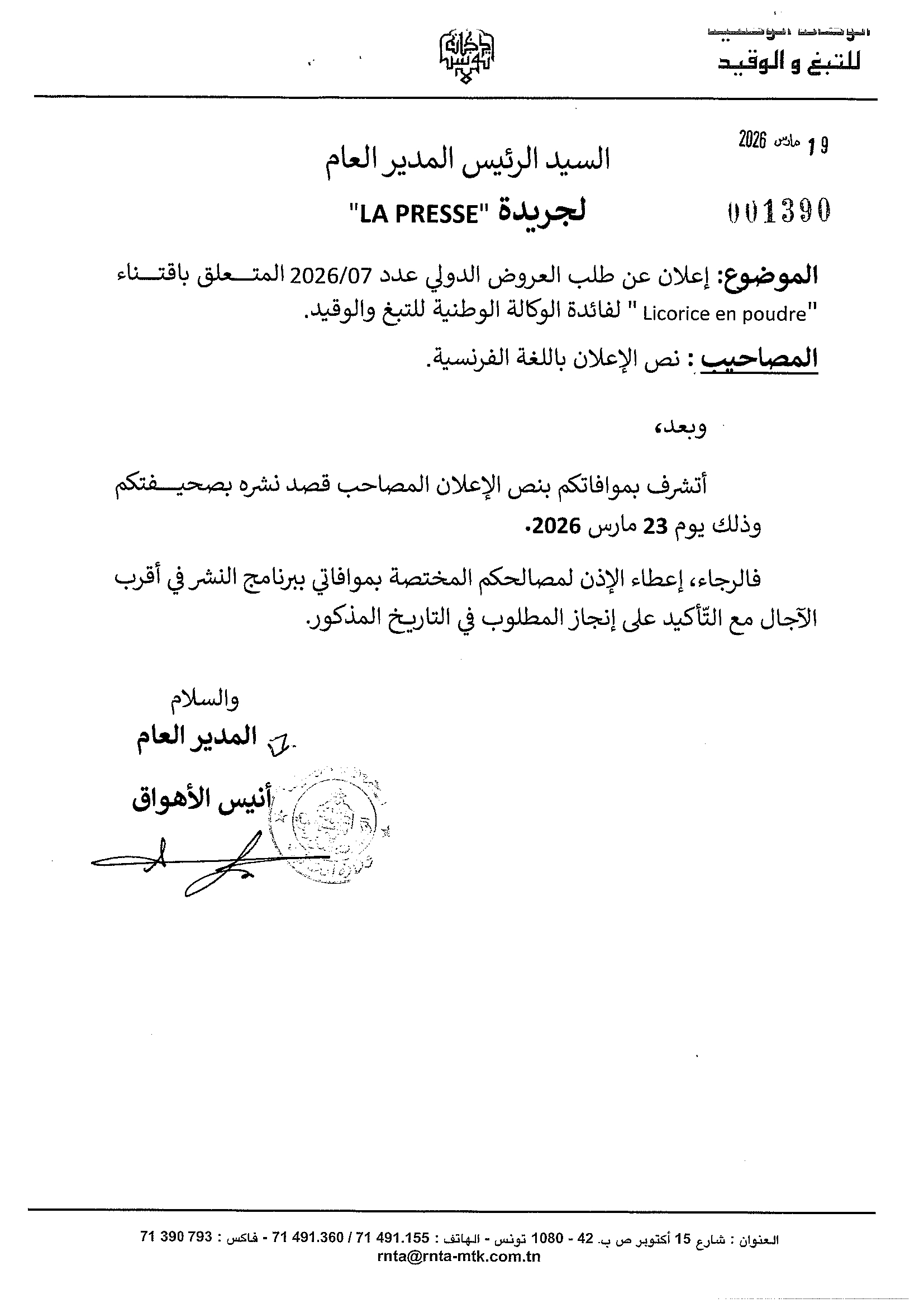 Avis dappel doffres international ndeg072026 pour lacquisition de licorice en poudre 1