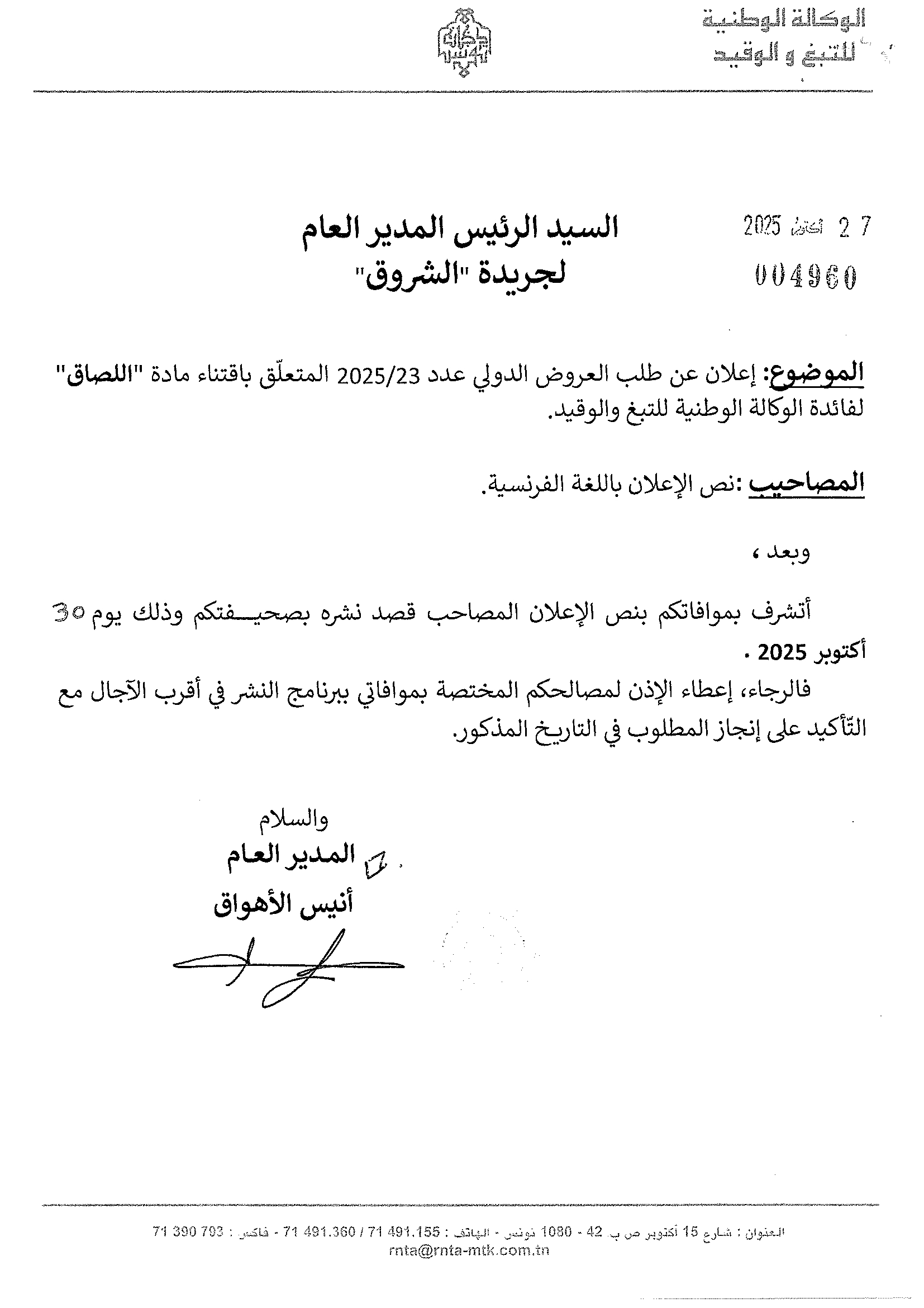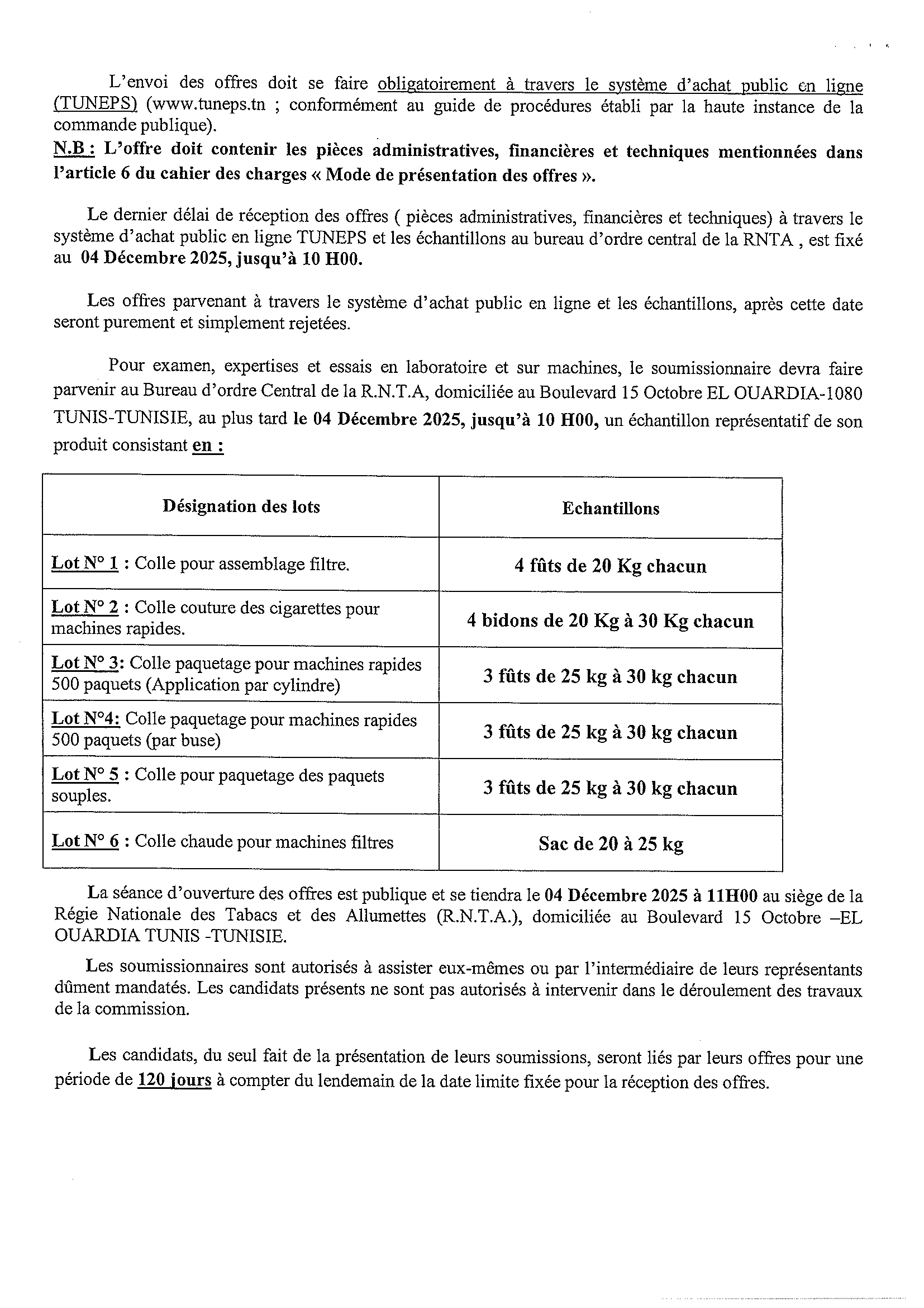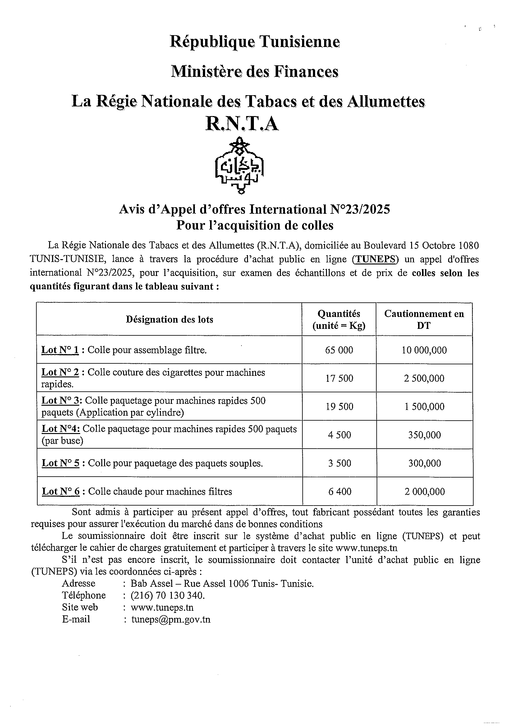 Avis d'Appel d'offres International N°23/2025 Pour l'acquisition de colles